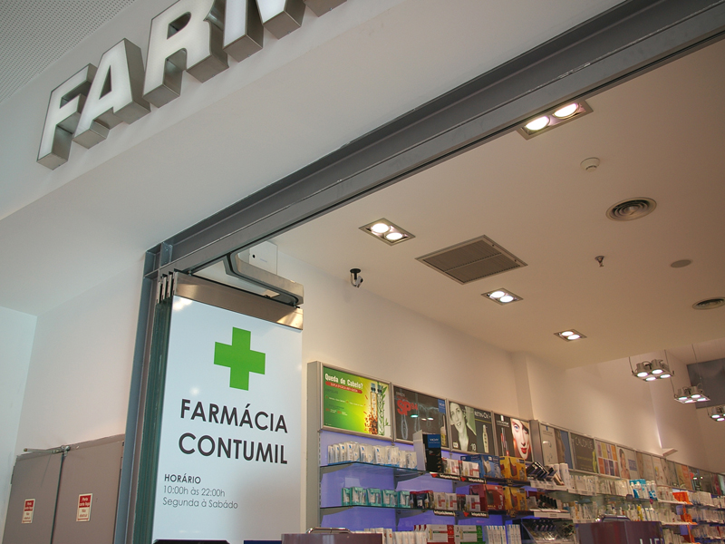 Com o sistema Doorflex Classic, a Farmácia Dolce Vita ganha uma maior visibilidade.